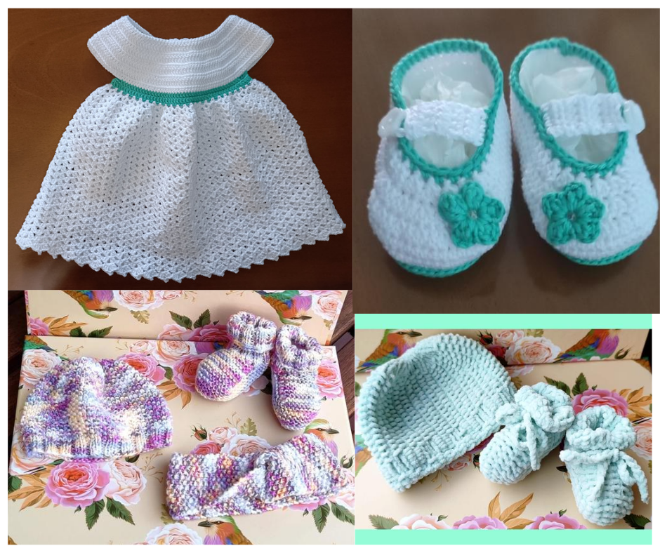 Realizziamo set nascita, copertine e vestitini per neonati con possibilità di personalizzazione.