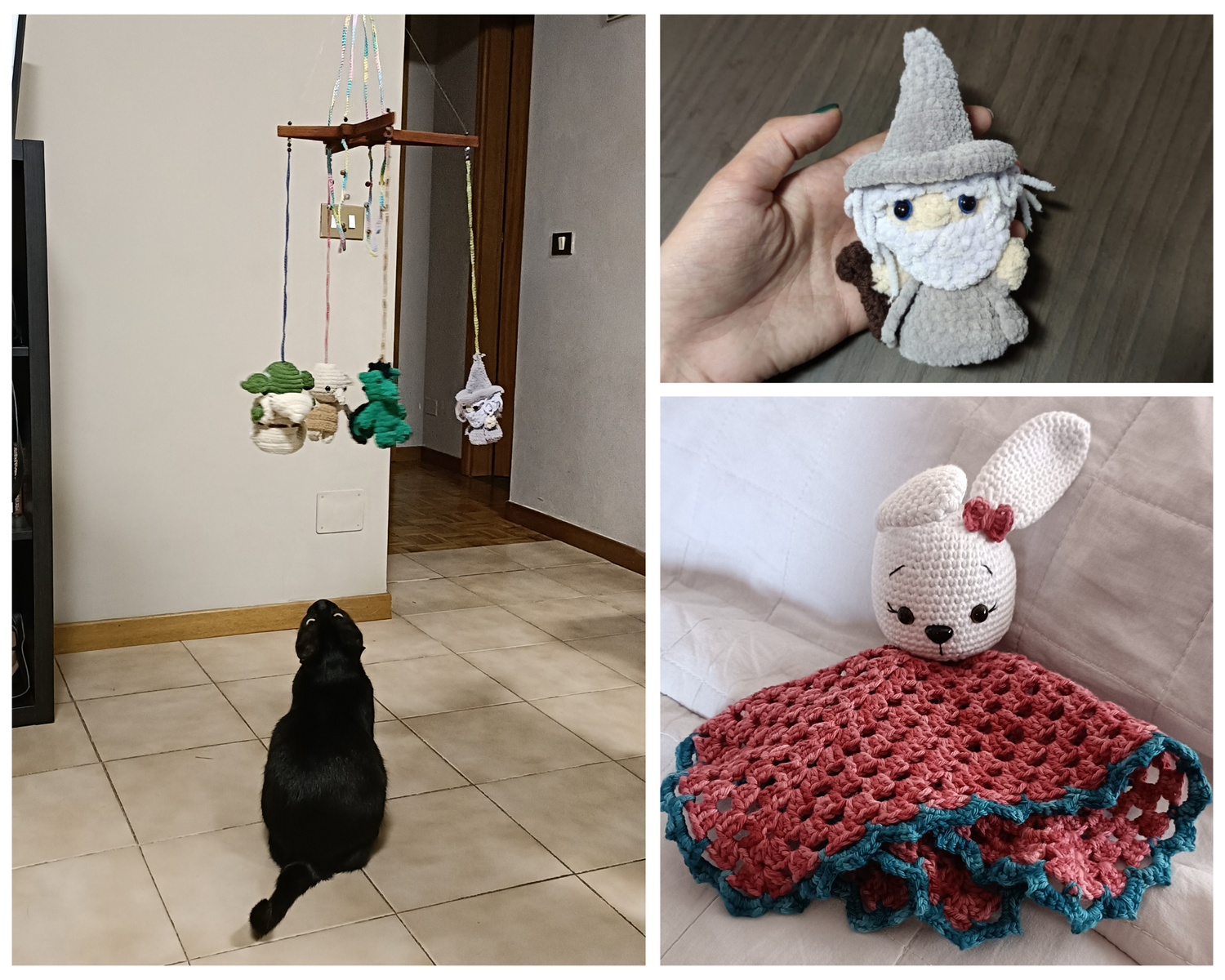 Realizziamo a mano pupazzi, copertine delle coccole e giostrine da appendere alla culla. Contattaci per richieste personalizzate.